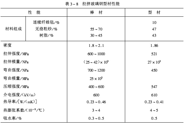 拉擠玻璃鋼制品的物理力學(xué)性能參見(jiàn)表3-8。