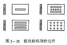 要求預(yù)成型模中的導(dǎo)紗元件能導(dǎo)紗,能導(dǎo)氈或能導(dǎo)紗同時(shí)又能導(dǎo)氈。導(dǎo)紗元件的結(jié)構(gòu)形式可根據(jù)拉擠產(chǎn)品斷面形狀進(jìn)行設(shè)計(jì)。板狀結(jié)構(gòu)導(dǎo)紗元件如圖3-35所示。